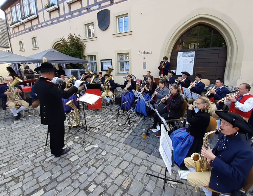 Da sich die Königsberger Musikkapelle - ebenfalls in traditioneller Bürgerwehrkleidung - vor einigen Jahren mangels geeignetem Dirigenten aufgelöst hat, übernimmt diesen Part beim Probeauszug seither die Musikkapelle Buch in ihrer original fränkischen Tracht.